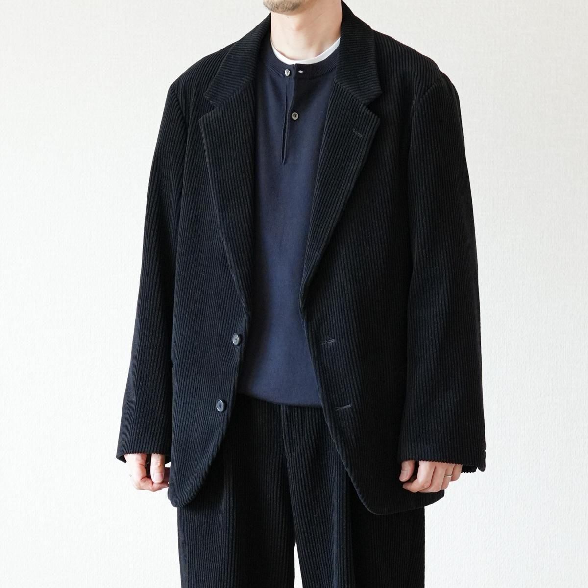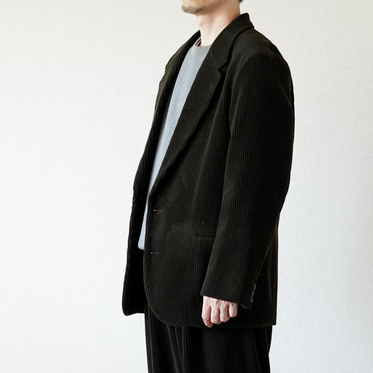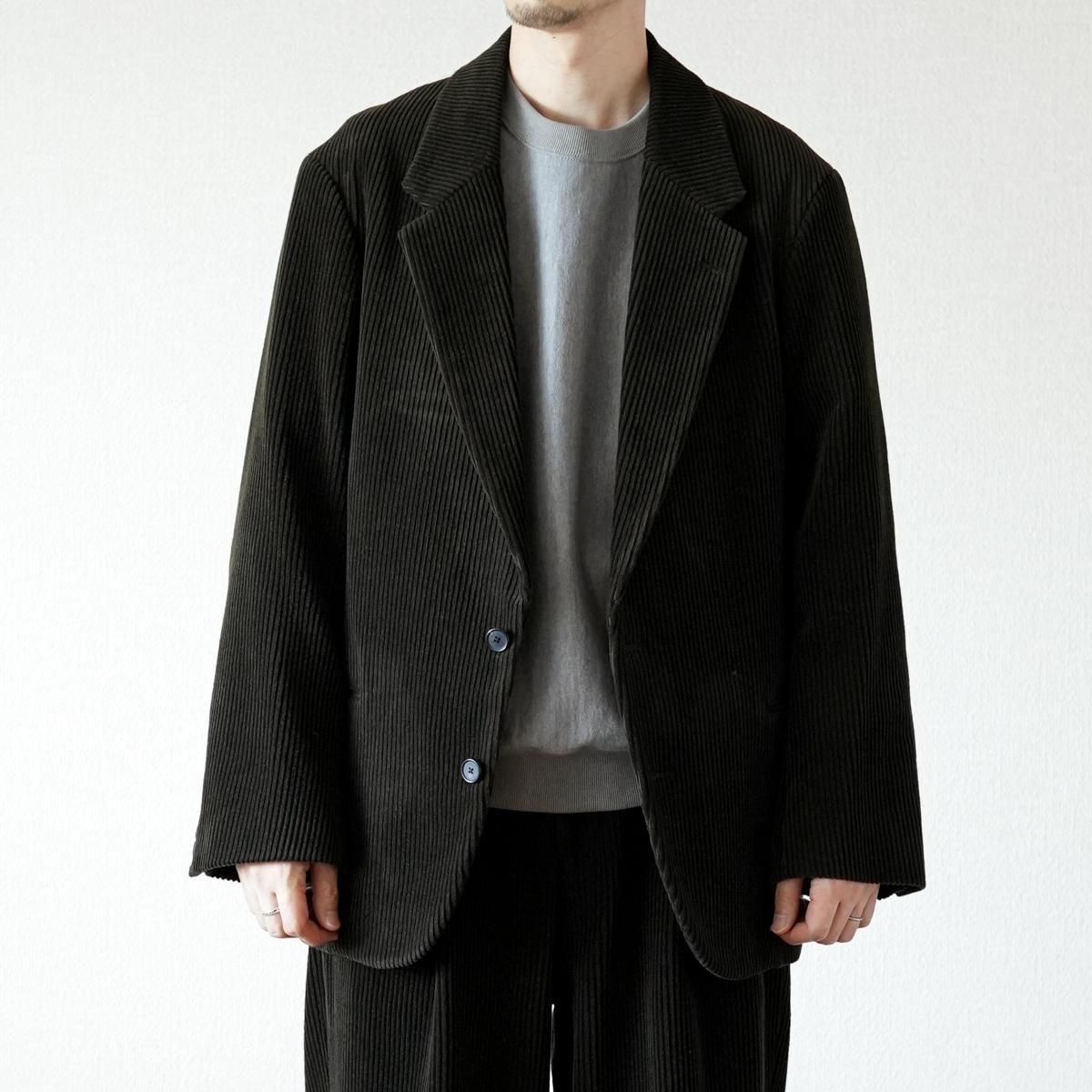 シングルブレステッド2Bジャケット。ややゆとりを持たせたシルエットで低めに設定したゴージラインのナチュラルショルダー。縫製は本格的なテーラード工場で丁寧に仕立てられています。表地は、経糸にスーピマコットン、緯糸にニュージーランド産のsuper160'sエクストラファインメリ ノウールを使用したウールコーデュロイ。太畝の山が綺麗な丸に仕上がる様に起毛されているのが特徴で、経糸のコットンの密度がしっかりとしている為、一般的なウールコーデュロイより毛抜けも少ないのが特徴です。裏地は、シルク/コットンのタフタシルクの光沢を、仕上げ工程でフィブリルさせることで落ち着かせたもの。滑りも良くとても軽い仕上がりです。