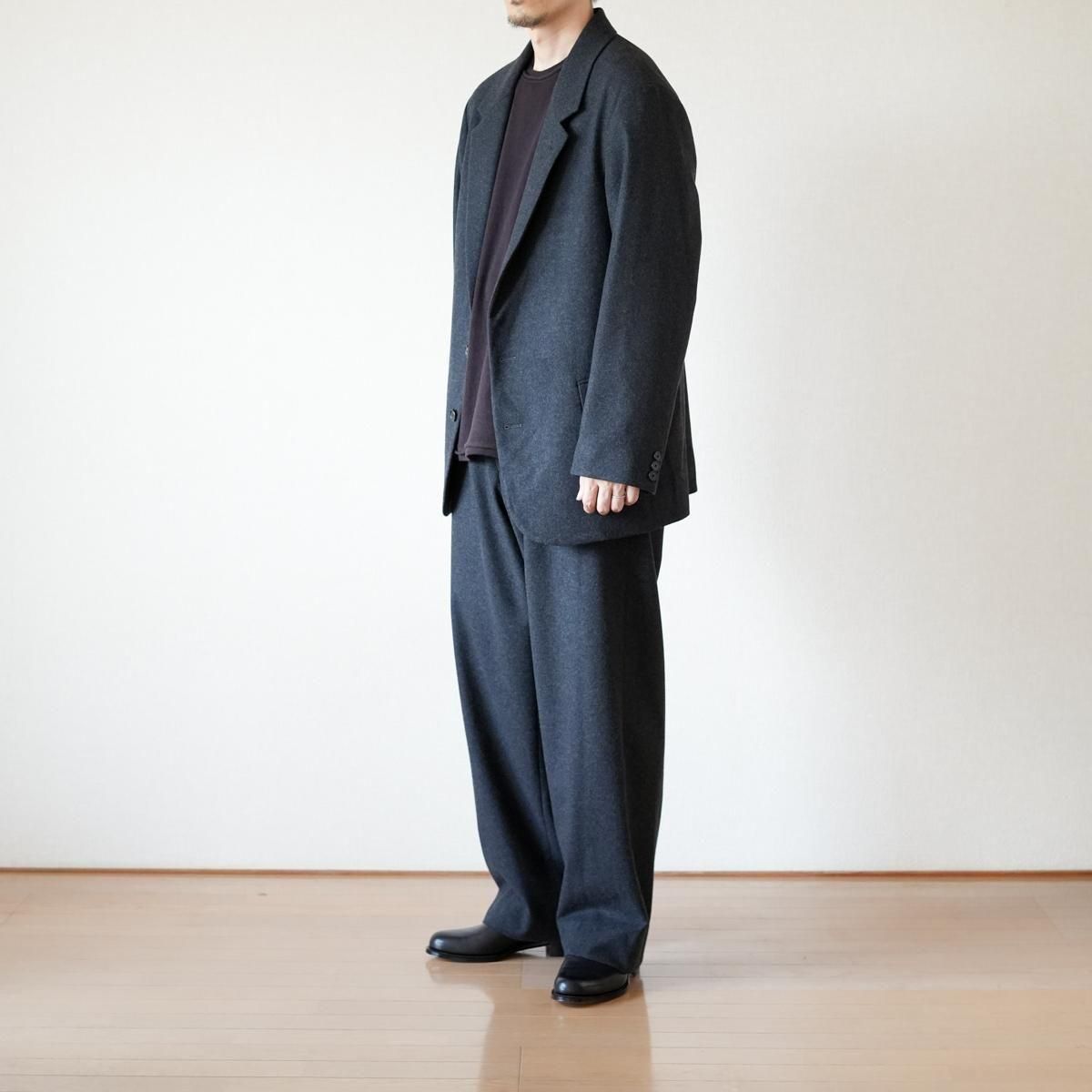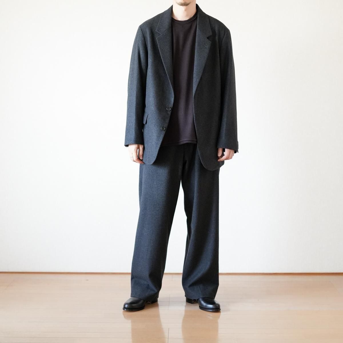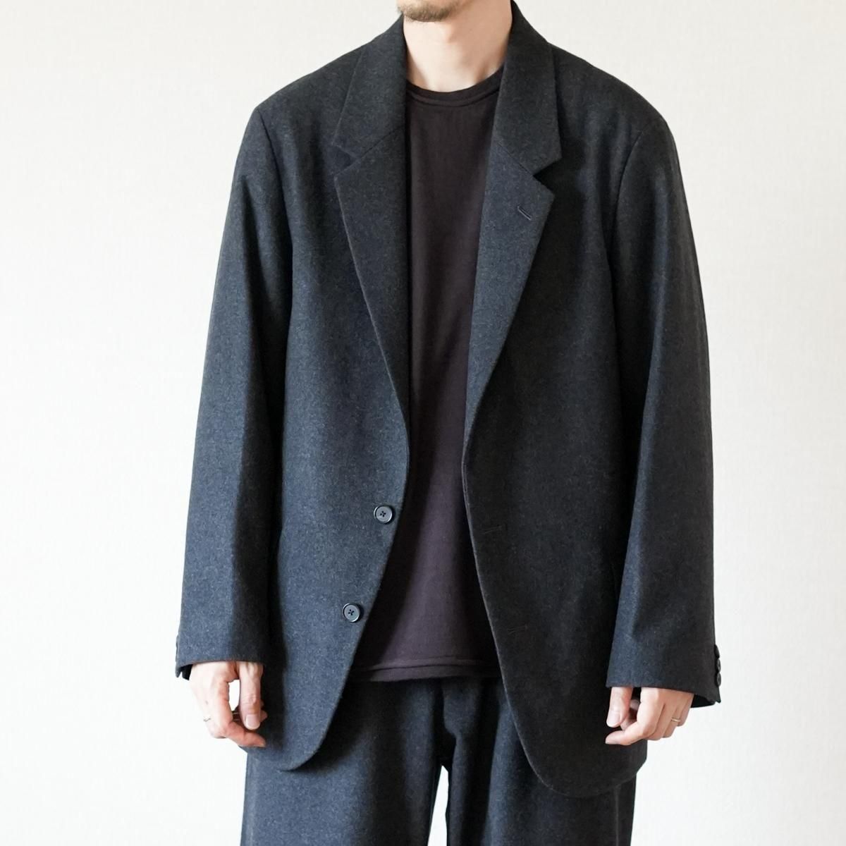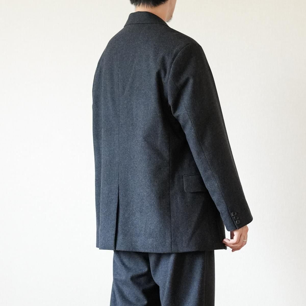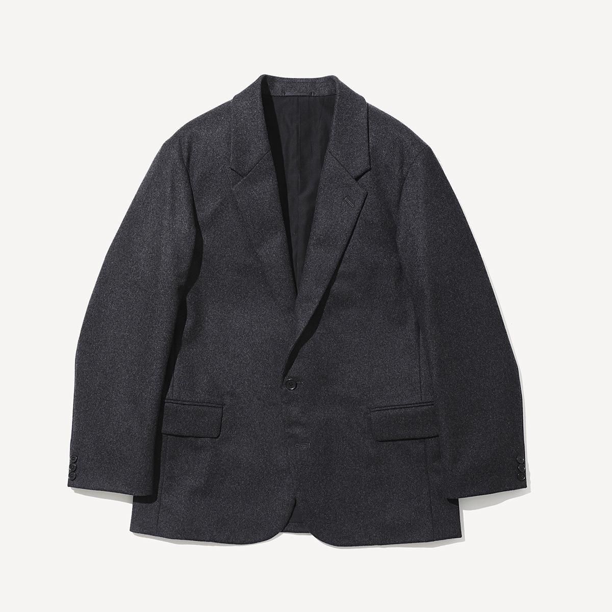 ややゆとりを持たせたシルエットのシングルブレステッド2Bジャケット。低めに設定したゴージラインにロングターンフロントのナチュラルショルダーです。縫製は本格的なテーラード工場で丁寧に仕立てています。表地は、カシミアに匹敵するsuper180'sの紡毛ハードフランネル。規格上これ以上打込みが入らないほどの高密度で織り上げ縮絨をかけています。ハリがありながらウールの痒みを感じない滑らかな肌触りが特徴です。糸はTOP染色のまま使用している為、風合いの良さも魅力。裏地にはシルク/コットンのタフタ素材を採用。シルクの光沢を、仕上げ工程でフィブリルさせることで落ち着かせています。滑りも良くとても軽いのが特徴です。