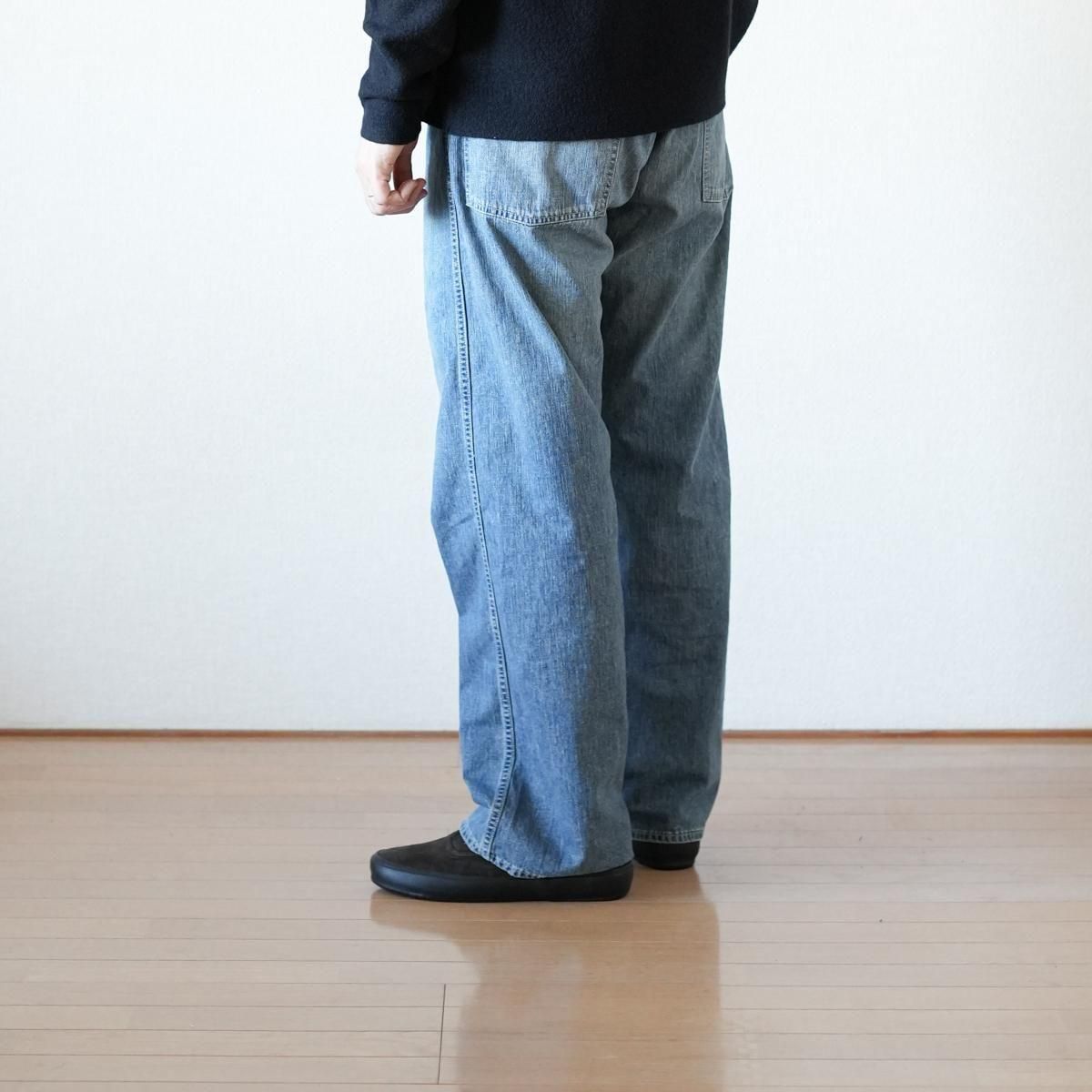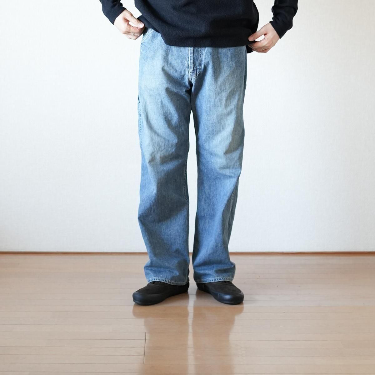 ペインターパンツの必要なエッセンスだけをミニマムに落とし込んだペインターパンツ。フェイク仕様のハンマーポケット、ストンと落ちる綺麗なストレートシルエットが特徴。所謂ビンテージの色落ちとはまた違ったムードを目指した加工は、職人の手作業と様々な洗い加工をいくつも組み合わながら、奥行きのあるフェードや色彩の濃淡を細かく調整して仕上げています。