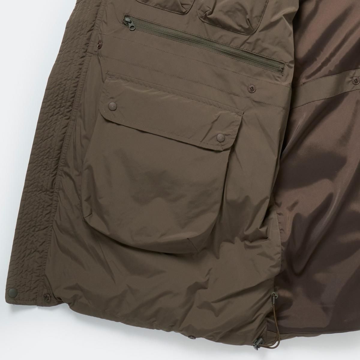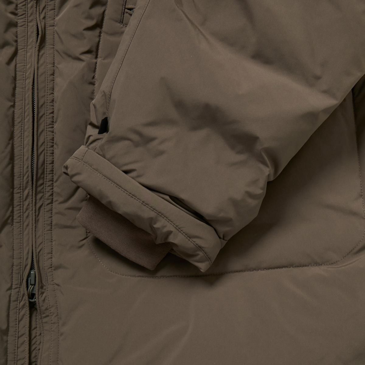 アメリカ軍のカデットパーカをデザインソースに2WAY仕様、ダウンジャケットにアレンジしたモデル。2WAYでロング丈、ショート丈とアレンジ可能。また内側に大小様々なポケットワークを施し、タックルケース、ルアーケース、モバイルなどを収納出来るようデザインされています。見た目以上に収納力の高いブルゾンです。ミリタリーのディテールでもある前振りの袖がデザインアクセント。アクションプリーツを加えることで、腕の可動域を広げています。