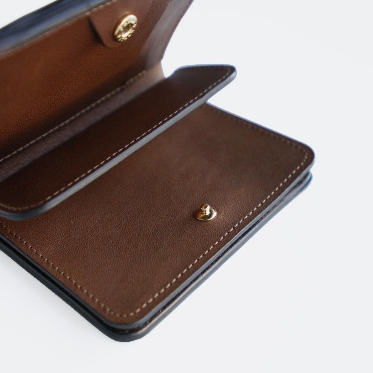 レザーシューズと同じく、熟練の職人によって製作されるformeのウォレットシリーズ。 片手に収まるコンパクトなサイズが特徴的な「POST WALLET」。formeの手がけるウォレットにおいて、紙幣を2つ折りせずに収納可能な仕様のウォレットでは最もコンパクトなモデルとなります。