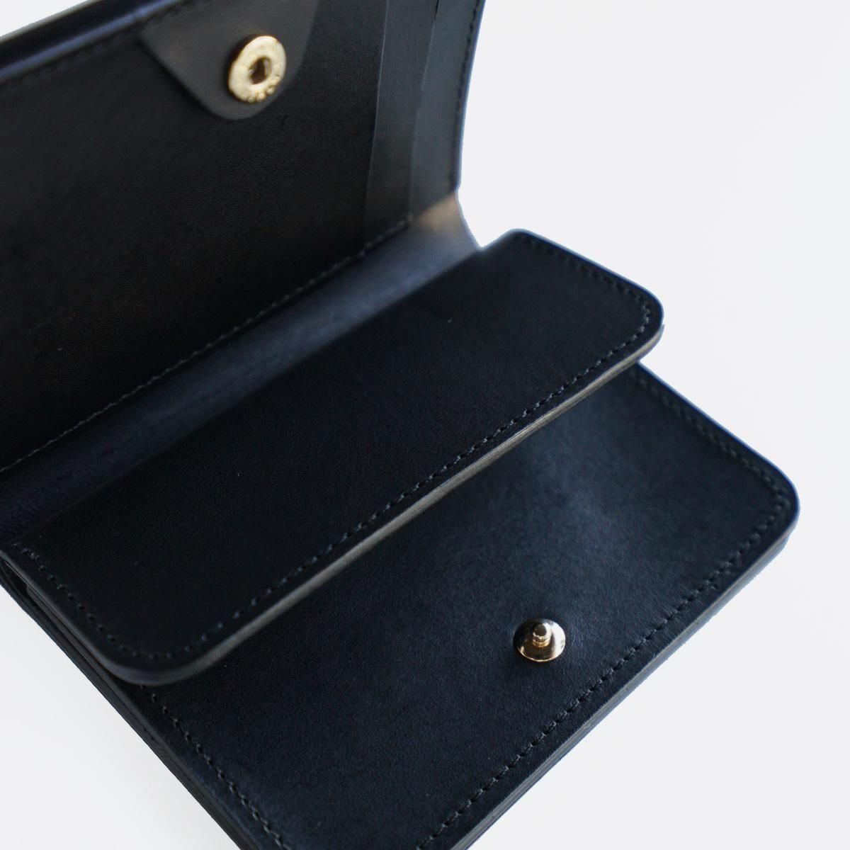 レザーシューズと同じく、熟練の職人によって製作されるformeのウォレットシリーズ。 片手に収まるコンパクトなサイズが特徴的な「POST WALLET」。formeの手がけるウォレットにおいて、紙幣を2つ折りせずに収納可能な仕様のウォレットでは最もコンパクトなモデルとなります。
