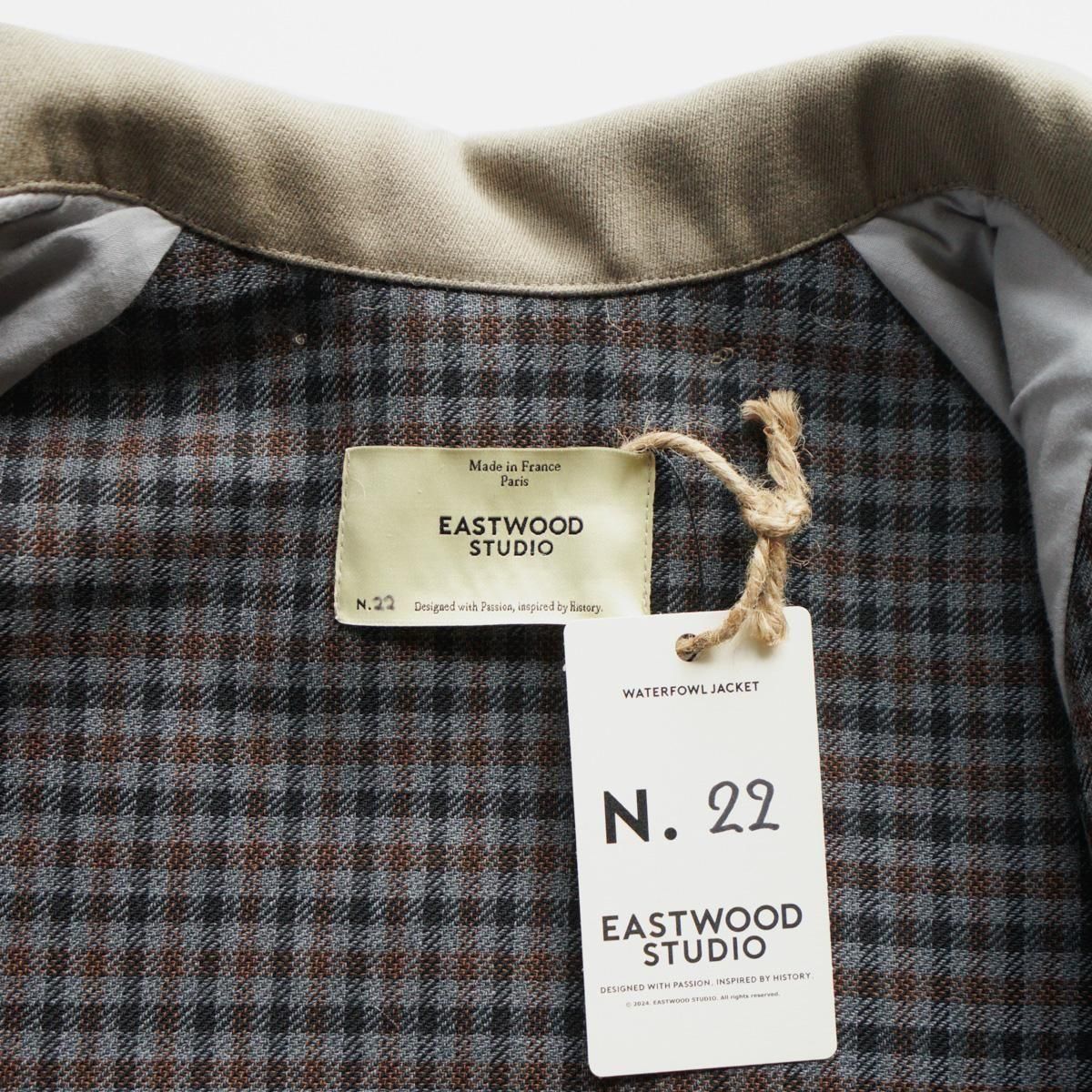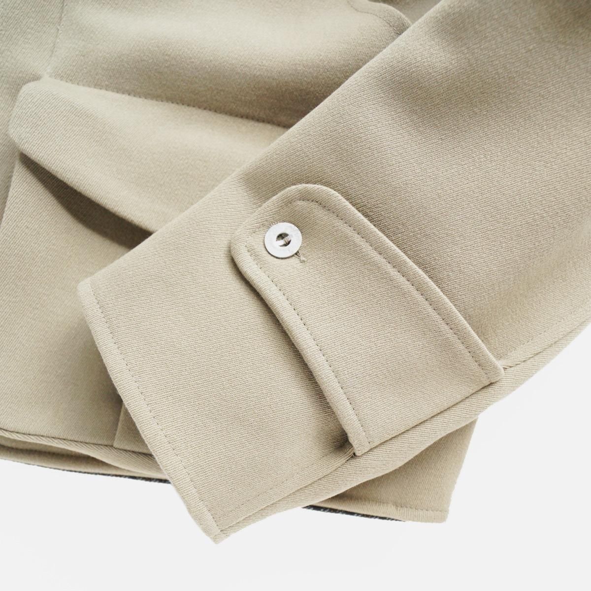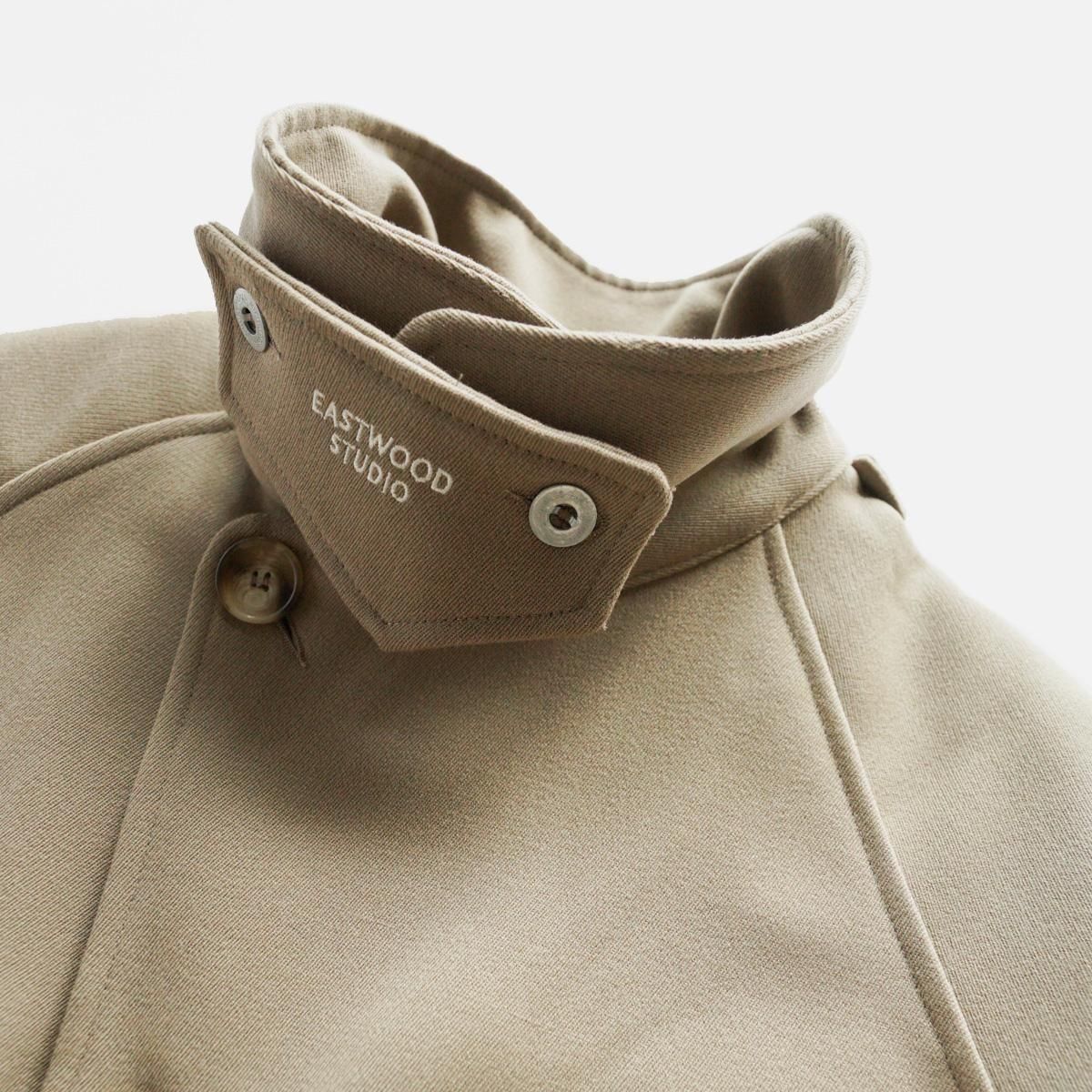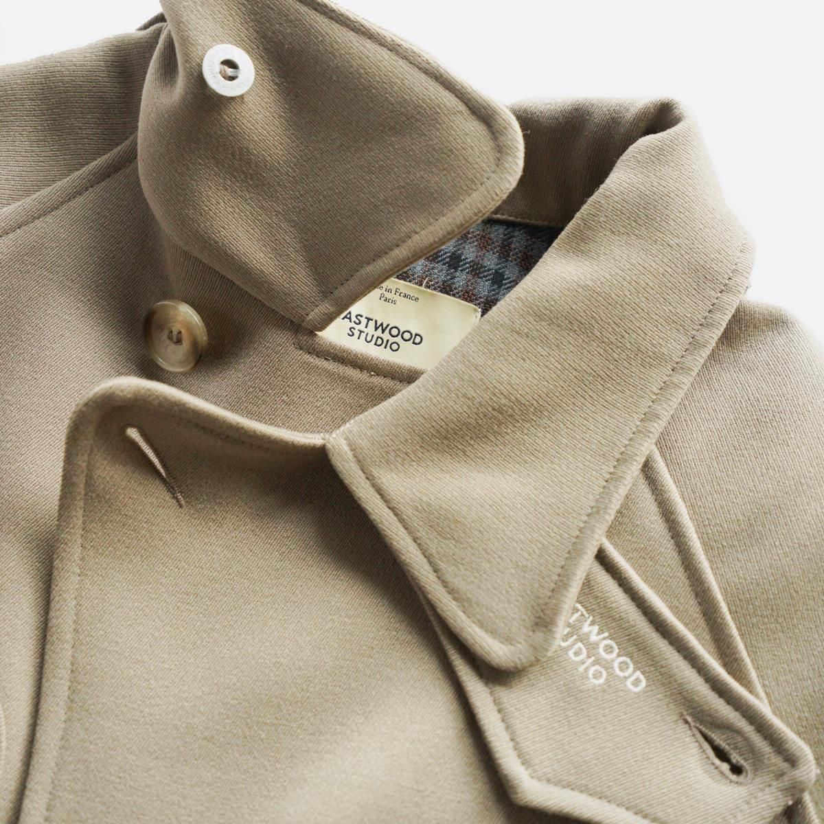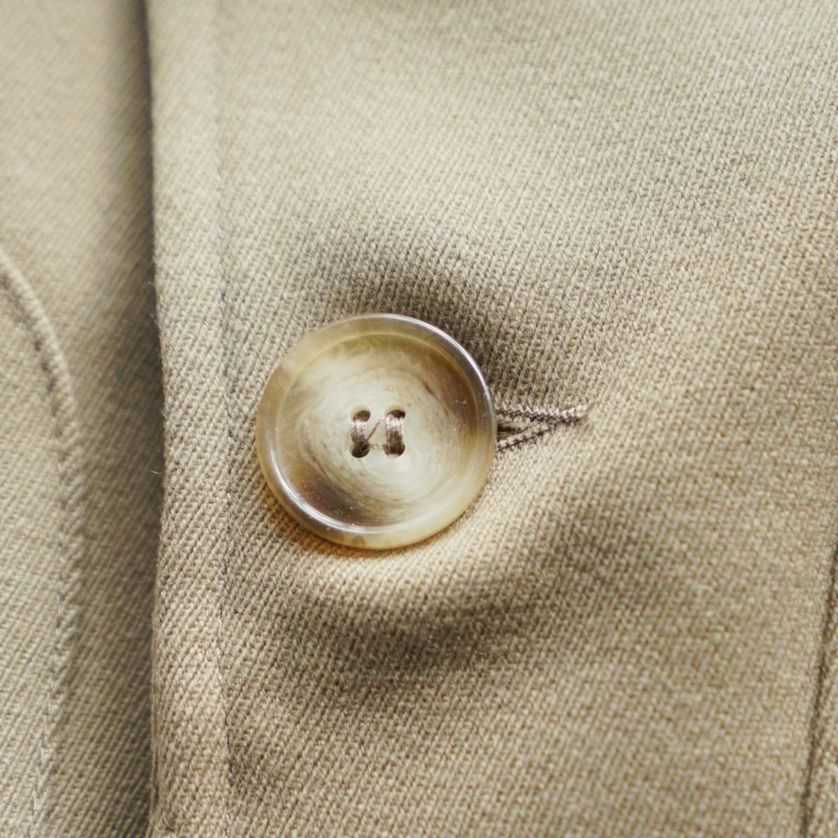 フランスはパリにあるブランド”EASTWOOD STUDIO”。フランスの卓越性と優雅さを体現したブランドです。伝統的な漁業や狩猟用の衣服の伝統から主なインスピレーションを得て作られた一作目の作品のジャケット。1950年代のヴィンテージのウィップコード ウールで作られています。ジャケットのショートカットは、1940 年代のフライフィッシングの衣服から、バックポケットは、狩猟の際に動物を運ぶために伝統的に使用されていたハンティングポケットからインスピレーションを得ています。この機能的な特徴は、日常生活に馴染むよう再考されています。ジャケットに使用されている金属ボタンは、1870年から1950年まで使用されていたオリジナルのフランス軍ボタン。衣服の歴史に関する広範な調査とアーカイブ化の成果といえる唯一無二の一着です。