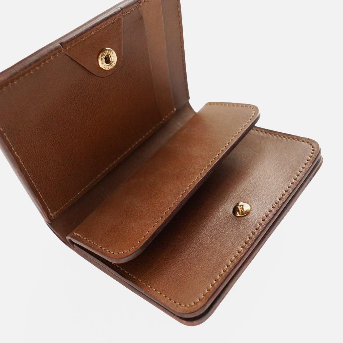 レザーシューズと同じく、熟練の職人によって製作されるformeのウォレットシリーズ。 片手に収まるコンパクトなサイズが特徴的な「POST WALLET」。formeの手がけるウォレットにおいて、紙幣を2つ折りせずに収納可能な仕様のウォレットでは最もコンパクトなモデルとなります。