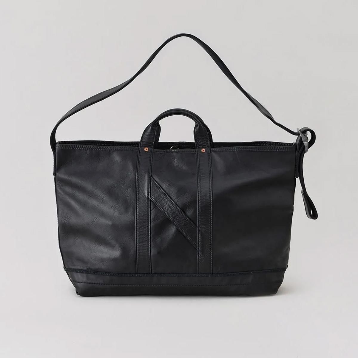 1920〜1950年代に登場した米国のツールバッグからインスピレーションを得てデザイ ンしたショルダーストラップ付きトートバッグ。素材には無骨な表情のホースレザーを 採用。マチの折り込みのリベット留めなど当時の面影を残しながらも、細部のディテールを現代的にアップデートしています。