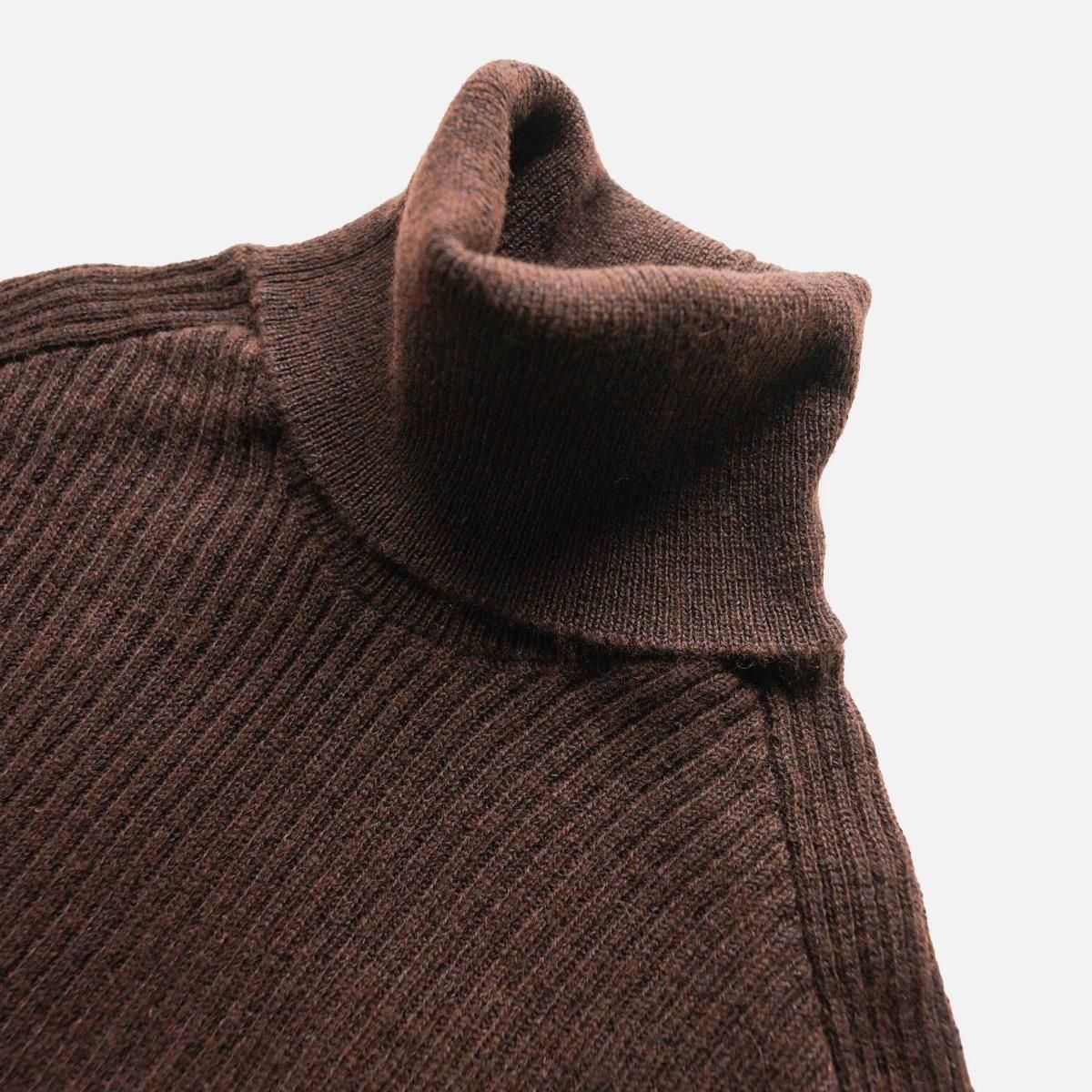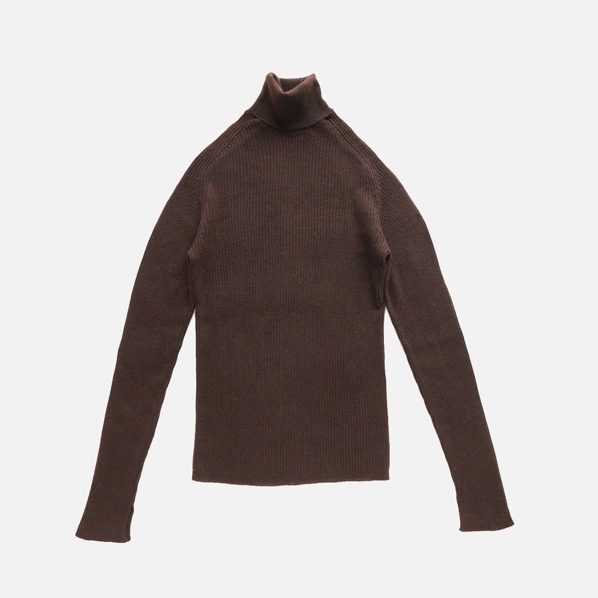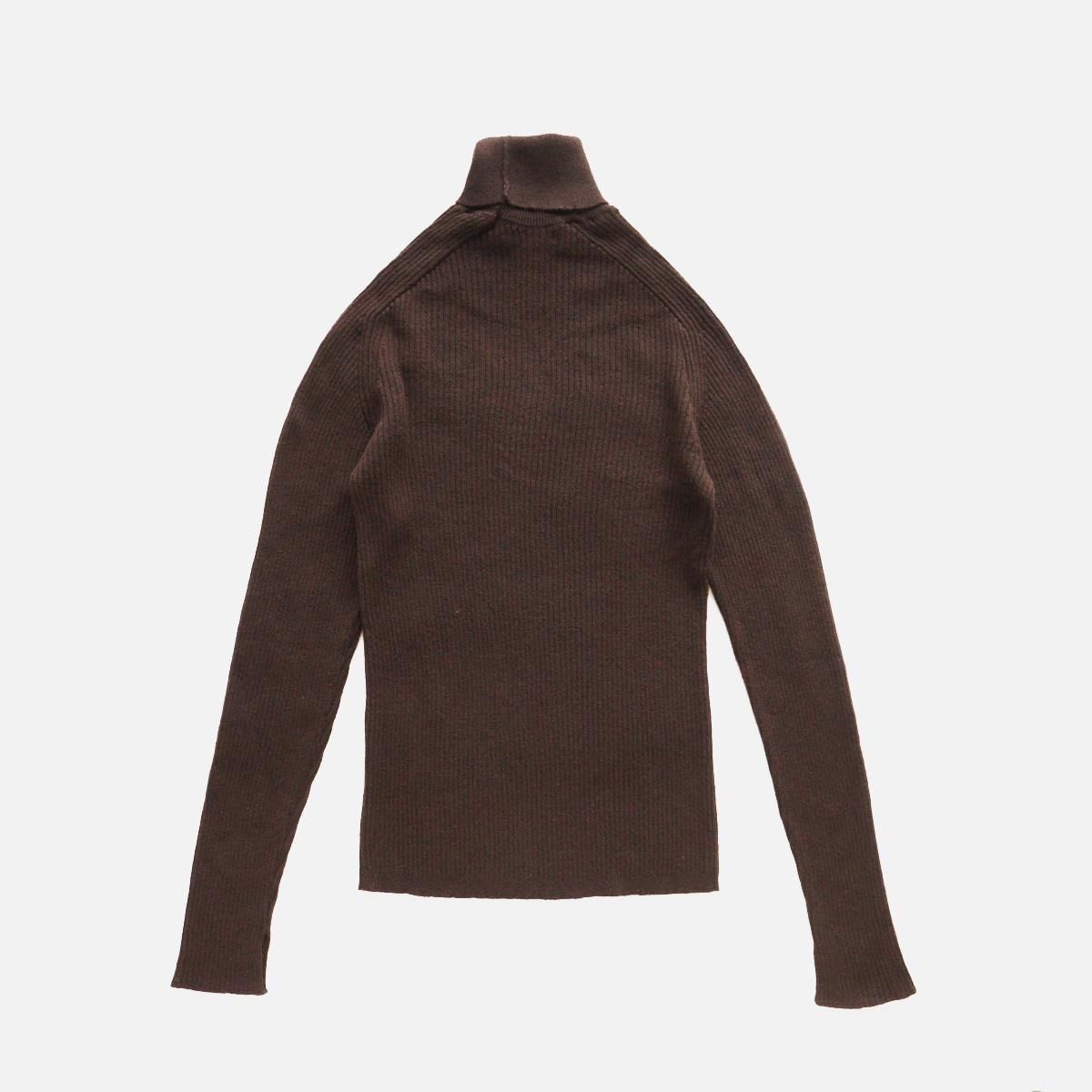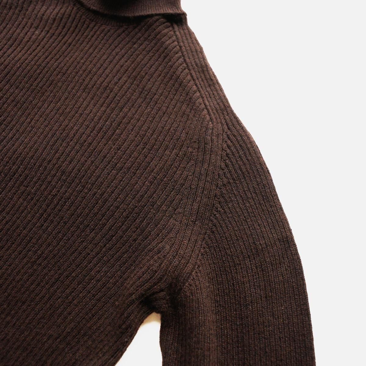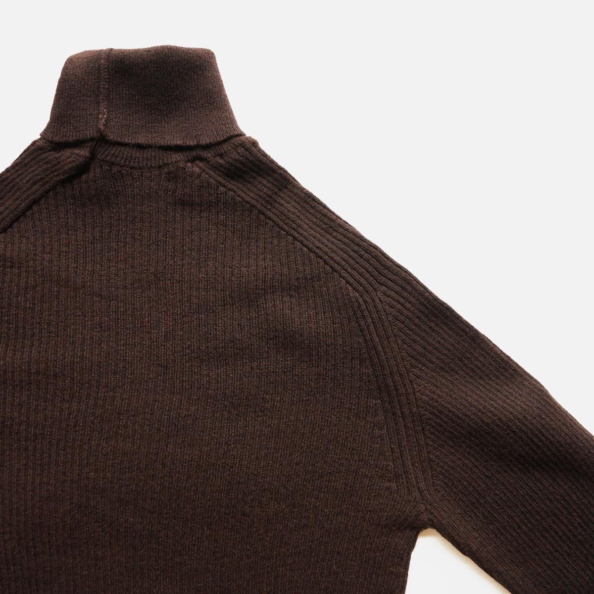 カシミヤシルクのヨーク切替えラグランスリーブのタートルネックニット。カシミヤと絹紡糸を撚糸し、カシミヤのぬめりとシルクの艶やかさをもつ、繊細で軽い素材を使用しています。シルクが入ることで、肌触りの良い柔らかなタッチの中にもシャープな軽やかさがある贅沢な素材です。袖口にスリットを入れて、シャツなどと重ね着をした際のアクセントになってくれます。