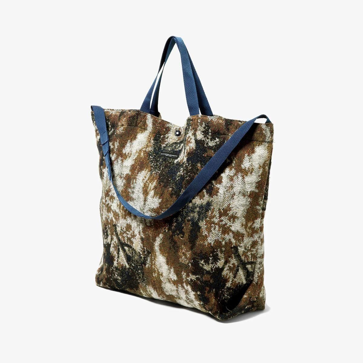 シーズンのコレクションで使用する個性的なファブリックで制作される、人気の高い中容量バッグ。トートとショルダーの2WAY仕様で、普段使いに適したユーティリティなアイテムです。ショルダー紐の一部は蛇腹状に縫い付けられており、それと解くことでお好みの長さに調整することが可能です。【※ひとつひとつ模様の出方が異なりますので、商品写真とは異なる場合がございます。一点物の風合いをお楽しみください。】