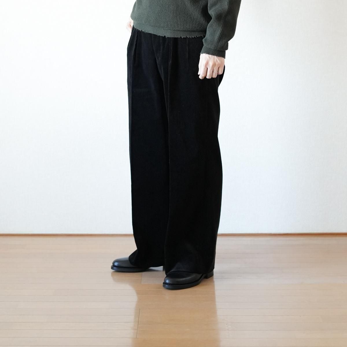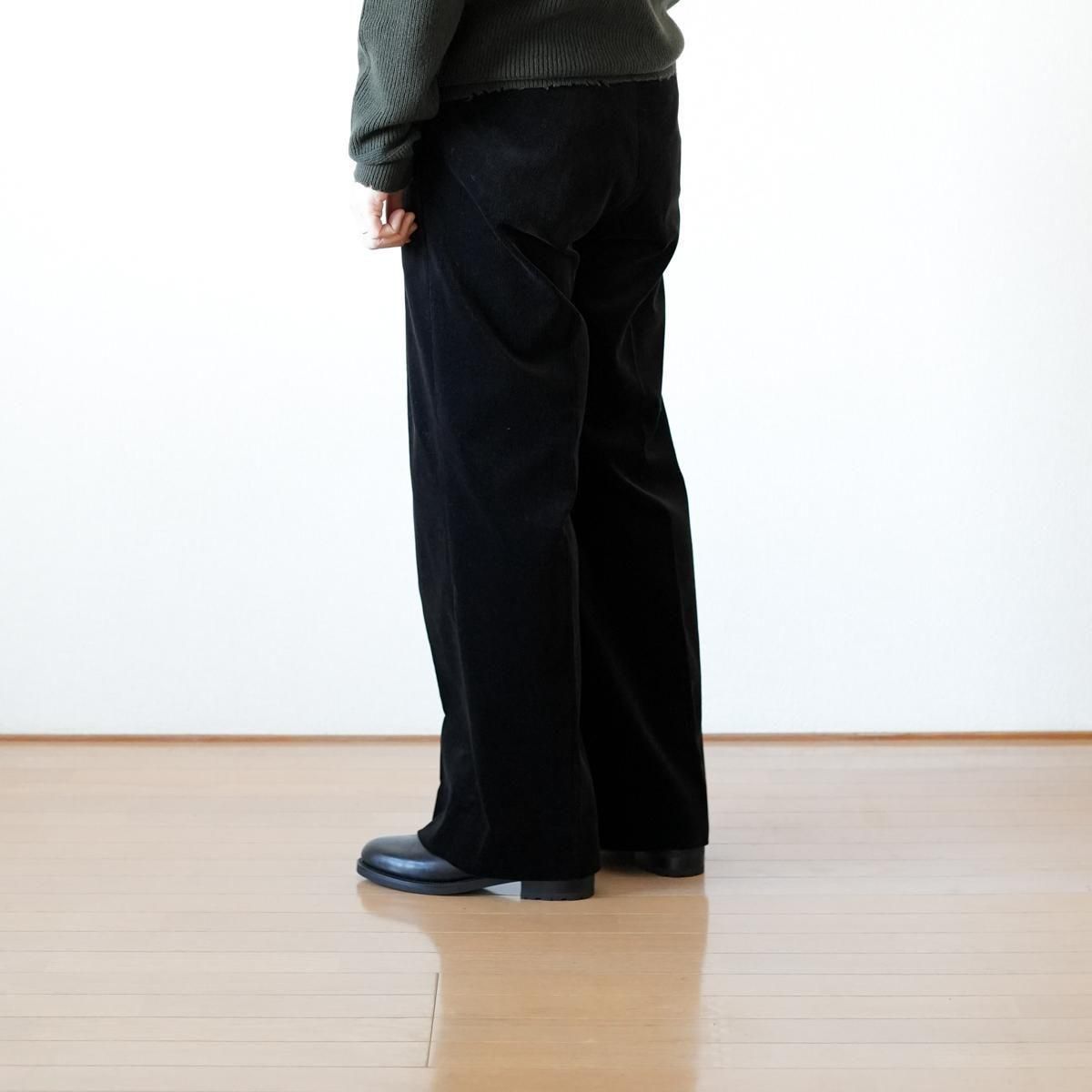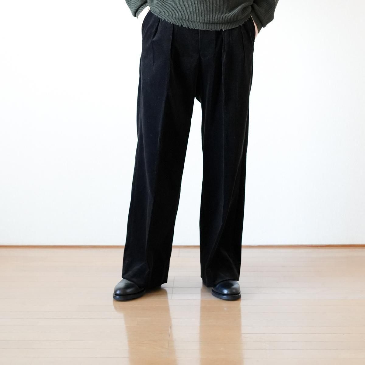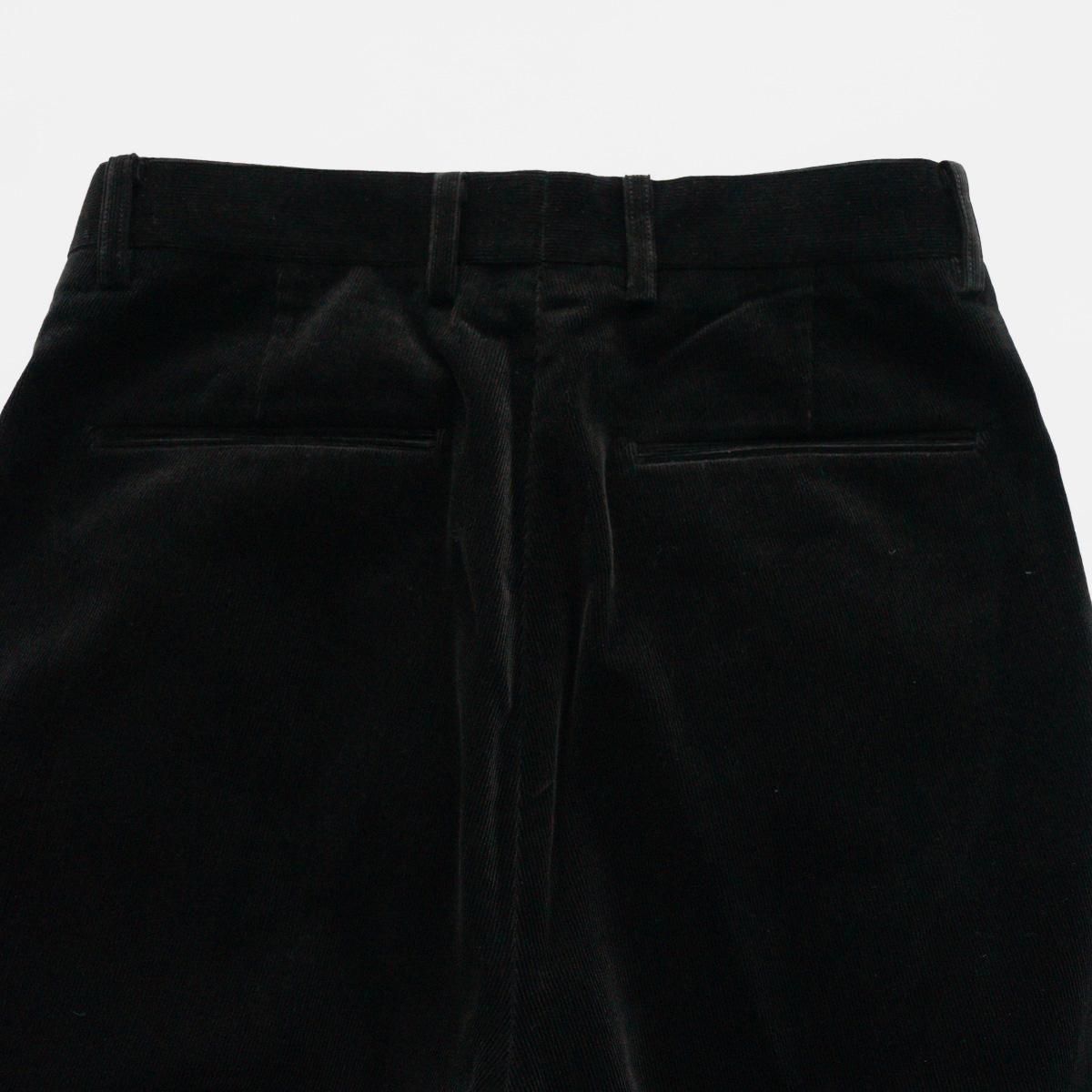 2タックのワイドテーパードシルエットの定番トラウザー。ヨコ糸に22/1番手のフィンクスコットンを打ち込み、そのヨコ糸を主にカッティングしてフィンクス原料の良さを表現したコーデュロイ素材を使用。フィンクスコットンならではの上品な艶感や素材のしなやかさが存分に発揮されているアイテム。