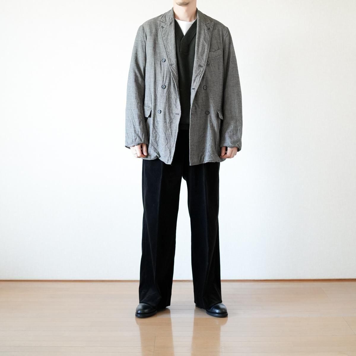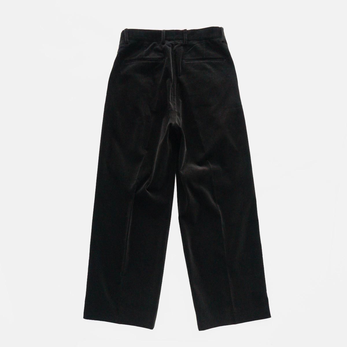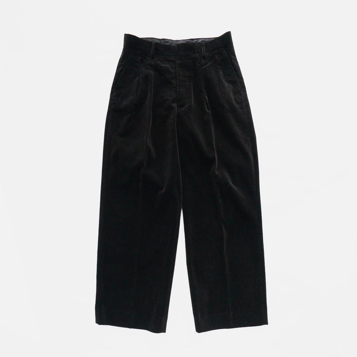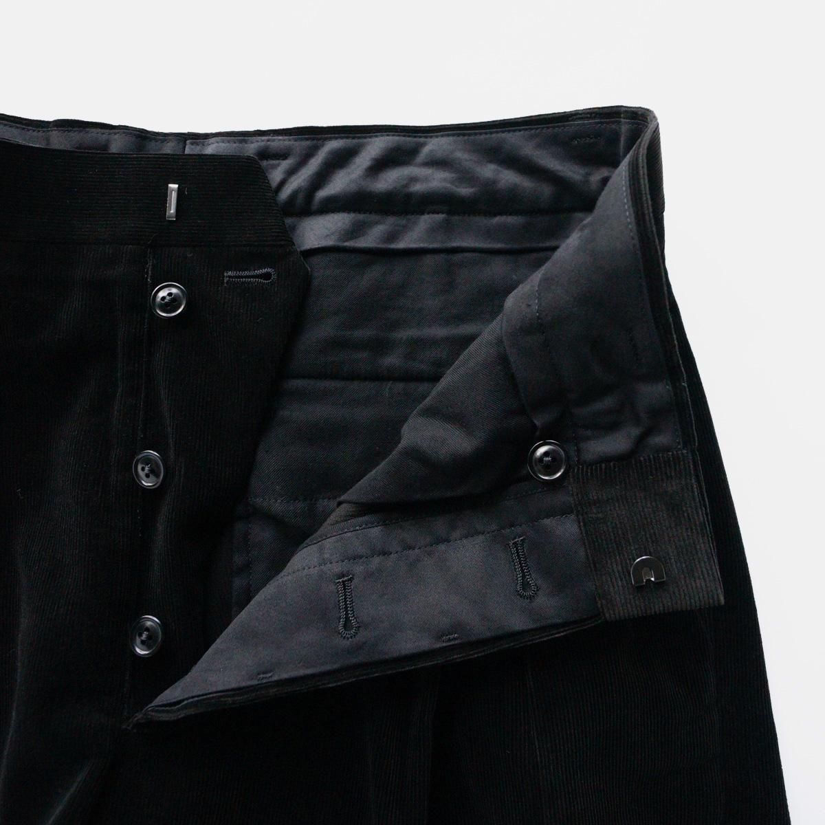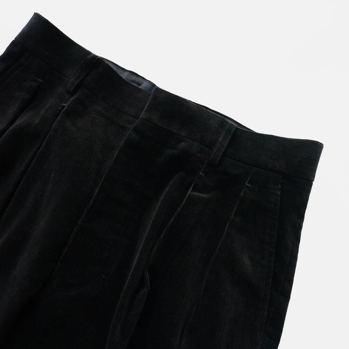 2タックのワイドテーパードシルエットの定番トラウザー。ヨコ糸に22/1番手のフィンクスコットンを打ち込み、そのヨコ糸を主にカッティングしてフィンクス原料の良さを表現したコーデュロイ素材を使用。フィンクスコットンならではの上品な艶感や素材のしなやかさが存分に発揮されているアイテム。