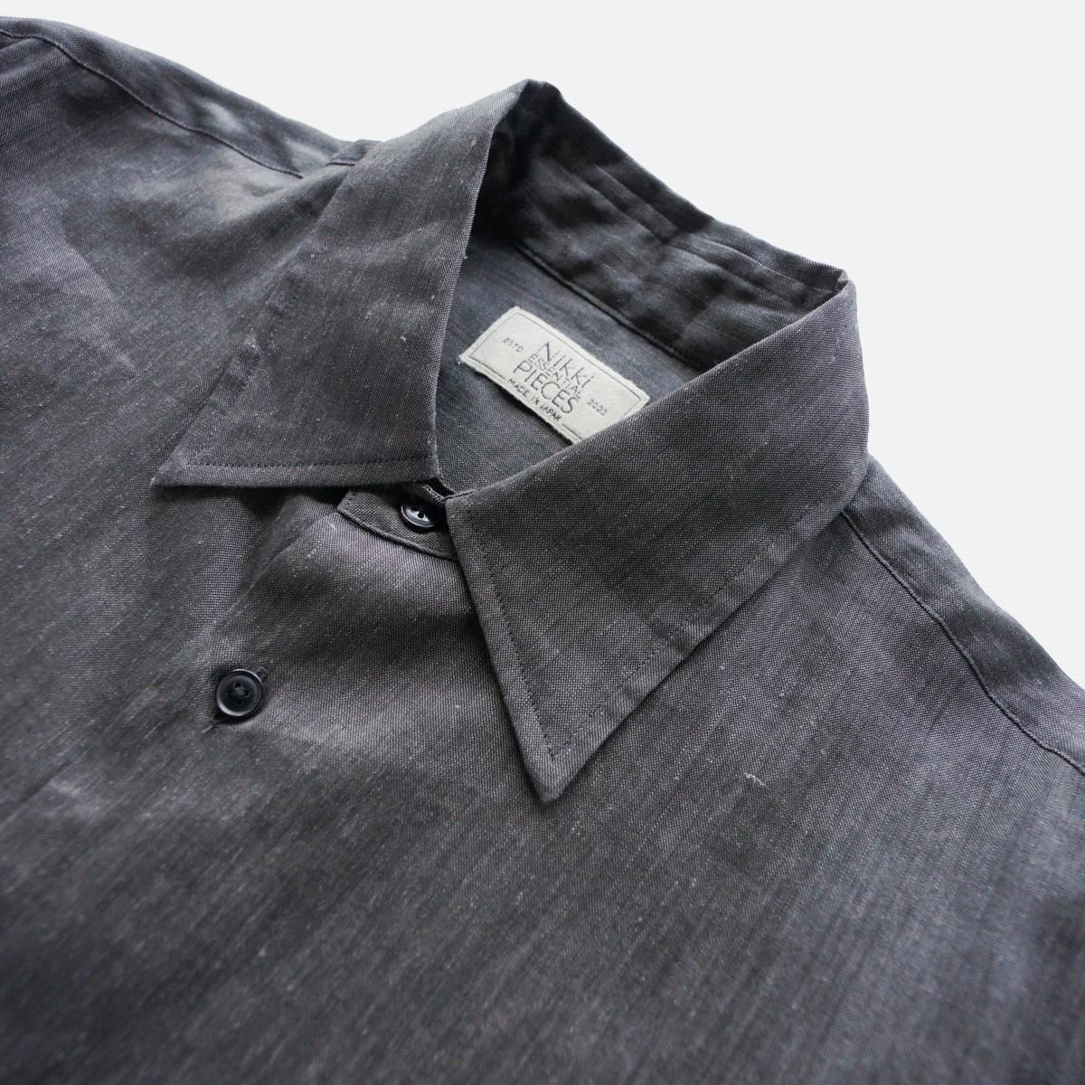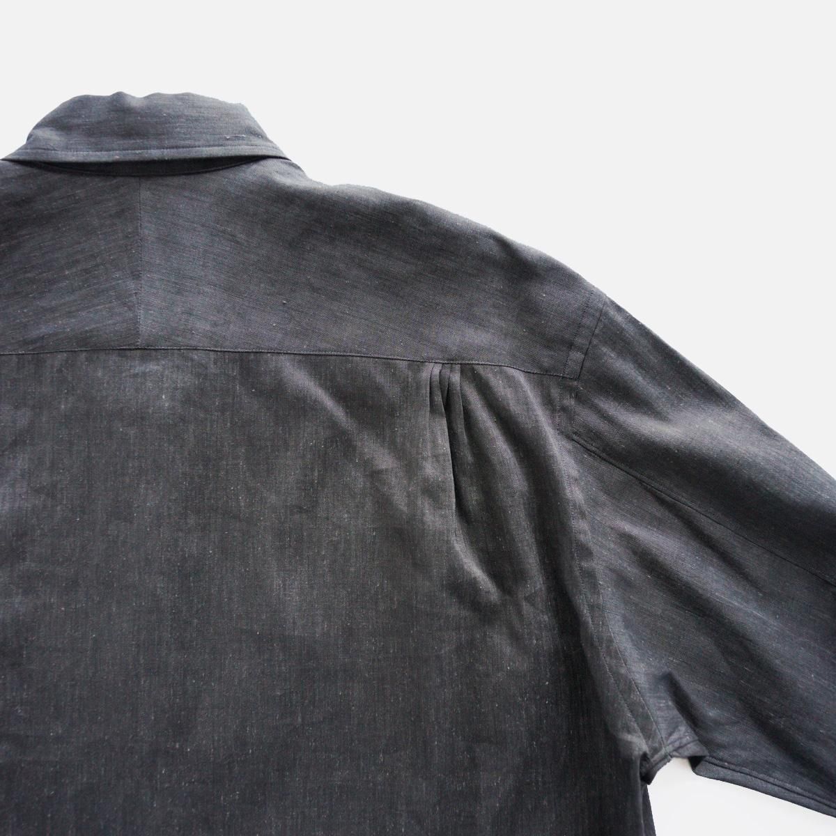 経糸がリネン、緯糸がアメリカンシーアイランドコットンの素材。節が少なく糸面が綺麗な、ヨーロッパ原料のリネンと「海島綿」の希代なる血統を受け継ぎ、最高級綿、アメリカンシーアイランドコットンの糸を交織しており、独特な触感が味わえる素材。衿が少し大き目のレギュラーカラーシャツ。袖口、後ろヨークのタックを4本のチビタックにすることで、繊細な雰囲気をプラスしています。また袖を2枚袖にすることで1枚袖のシャツより、着用やハンガーに掛けた際、少し立体的に見えるように作っています。ボタンは水牛ボタンを採用し、素材の良さをさらに引き出してくれる重厚感のある仕上げにしています。