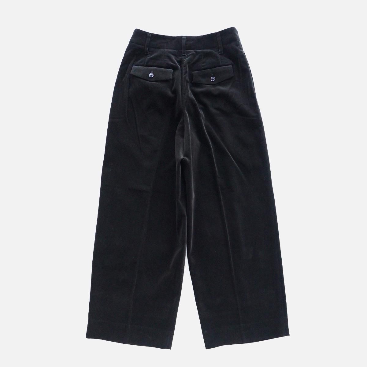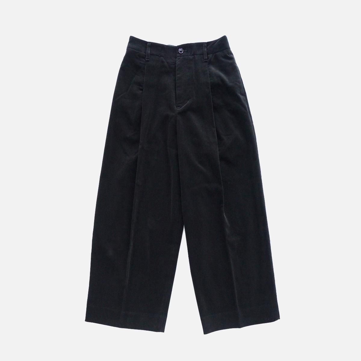 ヨコ糸に22/1番手のフィンクスコットンを打ち込み、そのヨコ糸を主にカッティングしてフィンクス原料の良さを表現したコーデュロイ素材を使用。フィンクスコットンならではの上品な艶感や素材のしなやかさが存分に発揮されているアイテム。