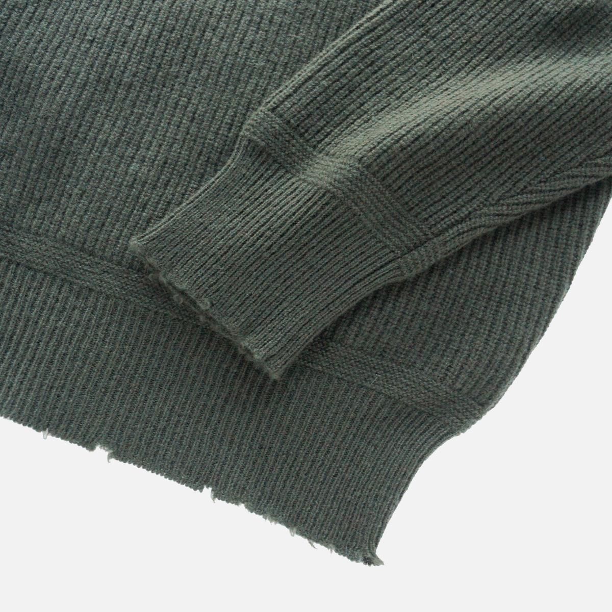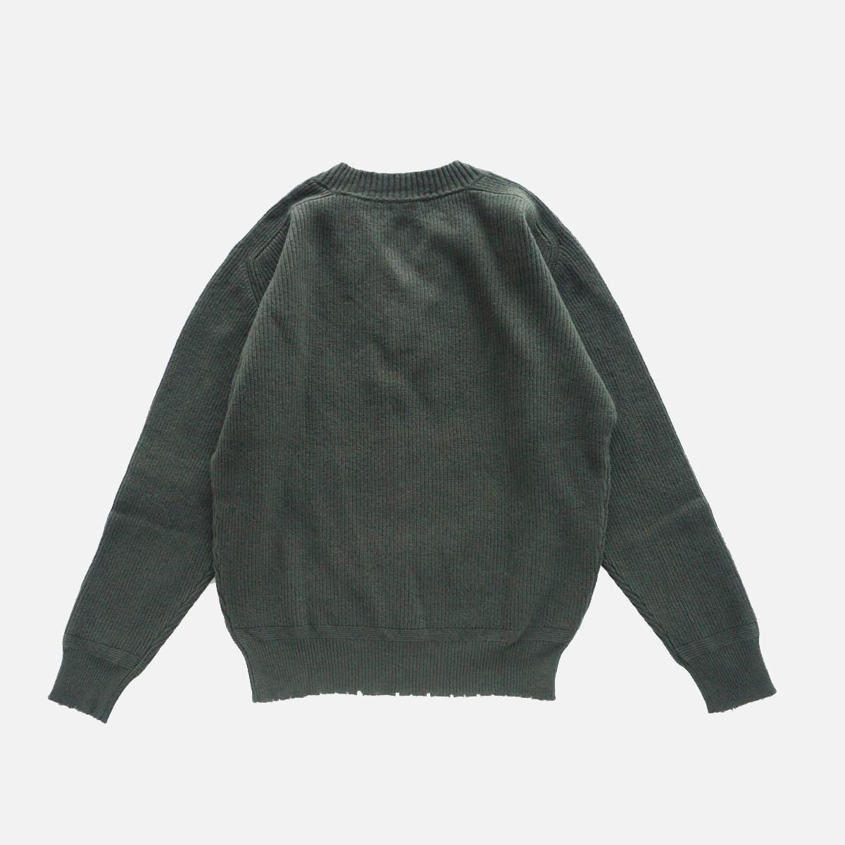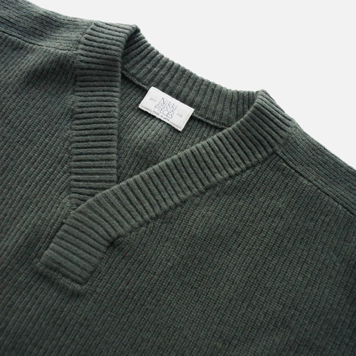 冬に着やすく厚すぎない編地で表情のある編地を作成。デザインはアメリカ空軍の整備士用ニットA1をベースにデザインアレンジしたVネックプルオーバー。肩で切り替え、肩章を袖まで続けることでサーマルを彷彿とさせるデザインに。袖口、裾に裁ち切り風のデティールを入れています。オーストラリア産メリノ種のエクストラファインラムズウール(18.5〜19/マイクロン)を厳選し用いた糸で、保温性・保湿性に優れ、非常に繊細で柔らかく軽量であり、かつ弾力性のある膨らみがポイント。