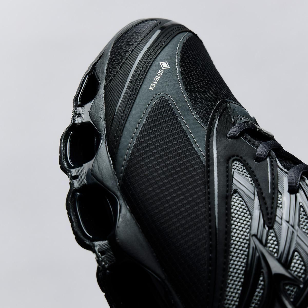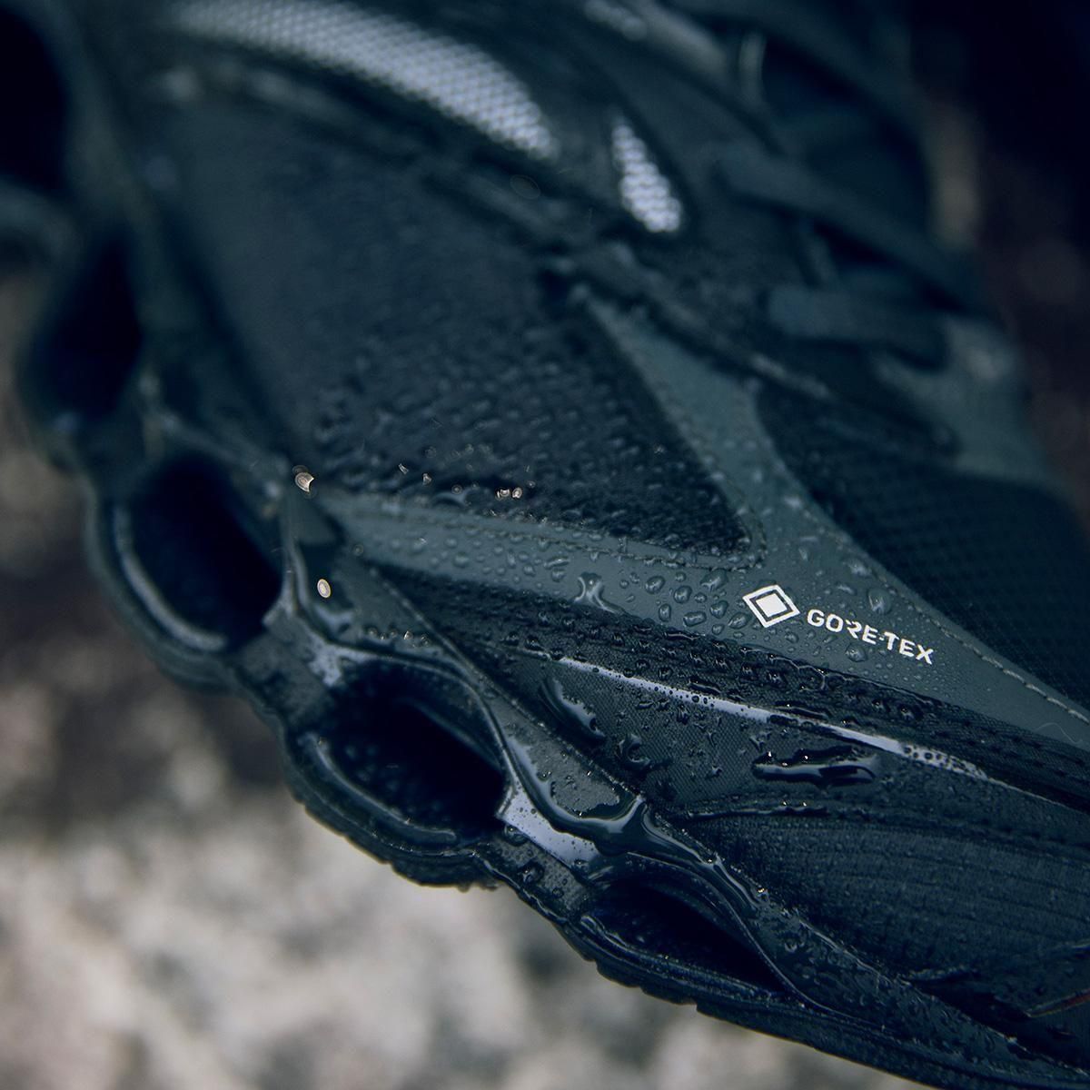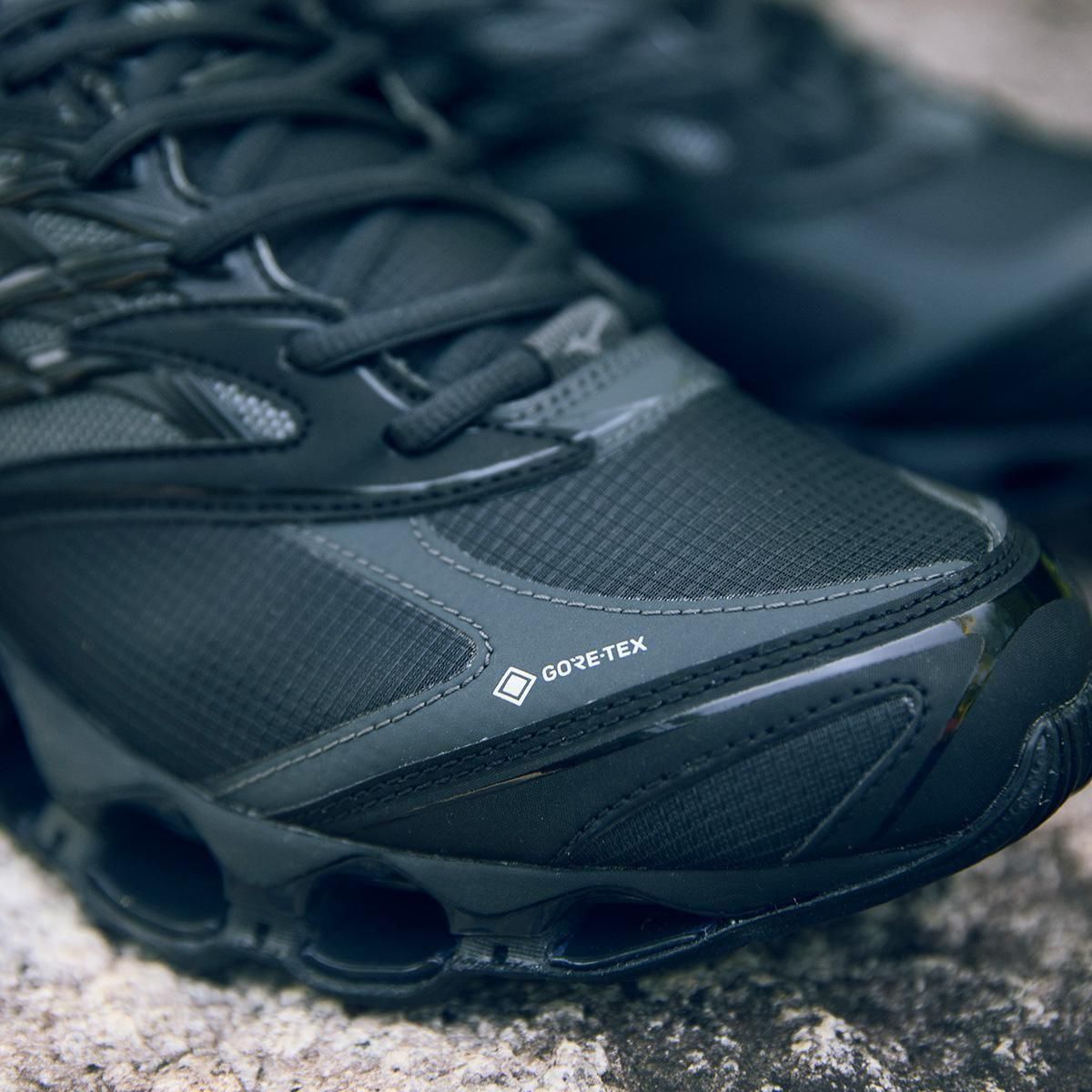 ミズノスポーツスタイルのフラッグシップモデルである「WAVE PROPHECY LS 」のGORE-TEX プロダクトテクノロジー搭載モデルをリリース。WAVE PROPHECY LS をベースにGORE-TEX プロダクトテクノロジーを搭載し、様々なシチュエーションや環境に対応可能。今作のWAVE PROPHECY LS GTXは、アッパーにマイクロリップストップを使用し、耐久性がありながらもソフトな風合いに。サイドパネルにはメタリック材を覗かせスタイリッシュかつテクニカルな雰囲気に仕上げています。ミズノ独自のソール構造、インフィニティウエーブを採用し、アウトソールラバーには濡れた路面でグリップ性を発揮するWgrip (ダブルグリップ) を採用することで、雨など悪天候のシチュエーションにも耐えられる一足となっています。