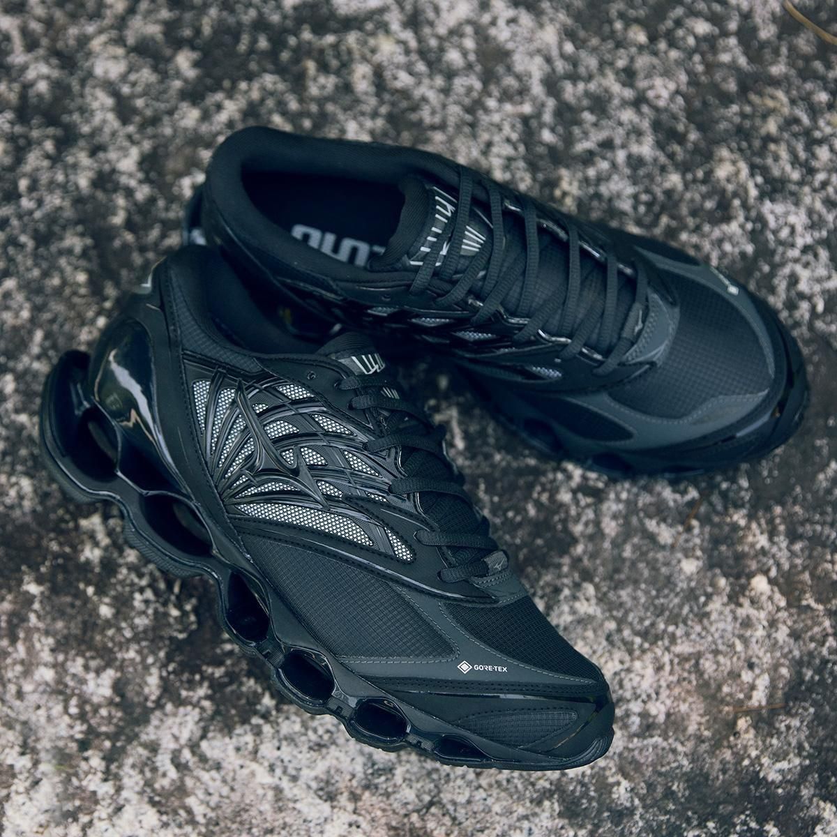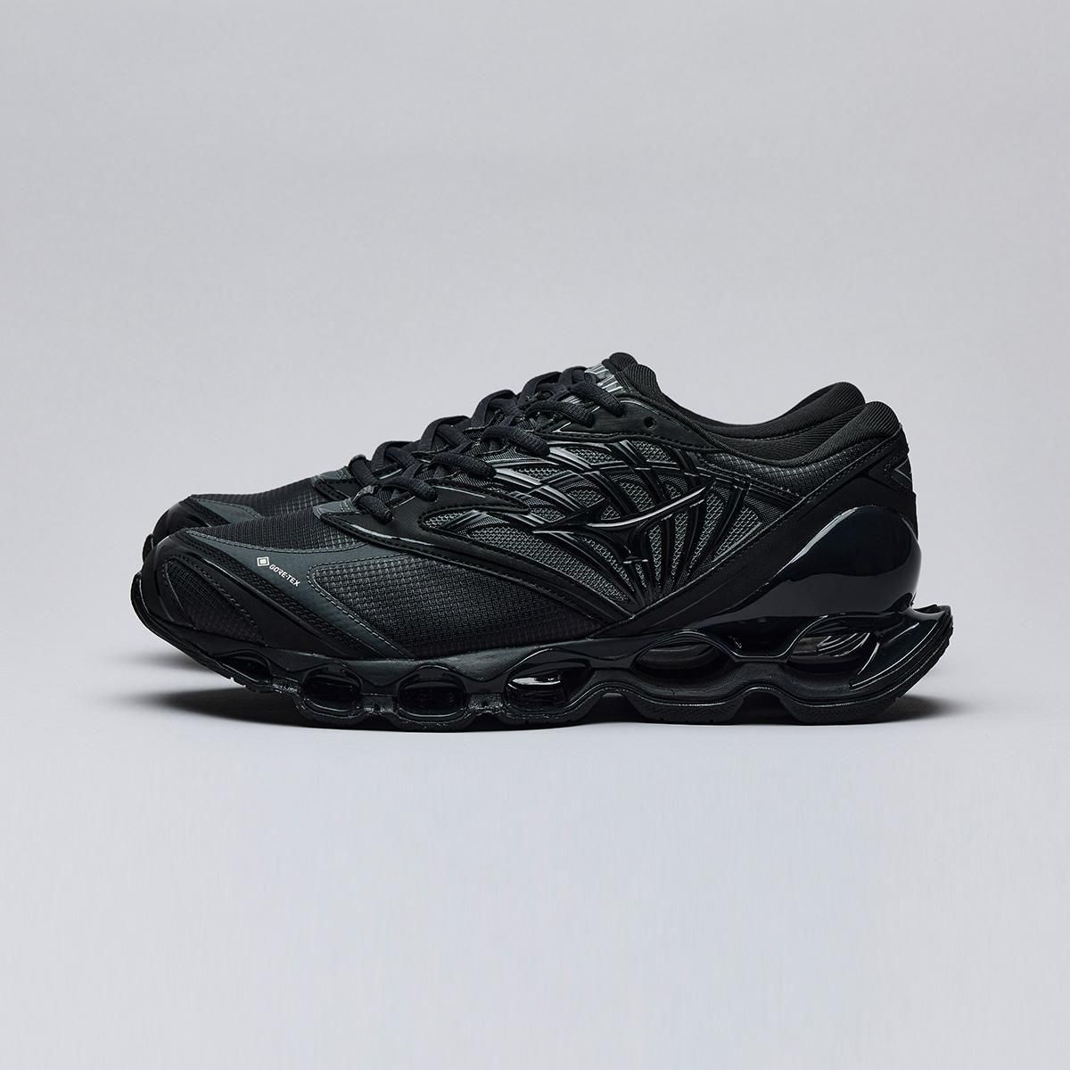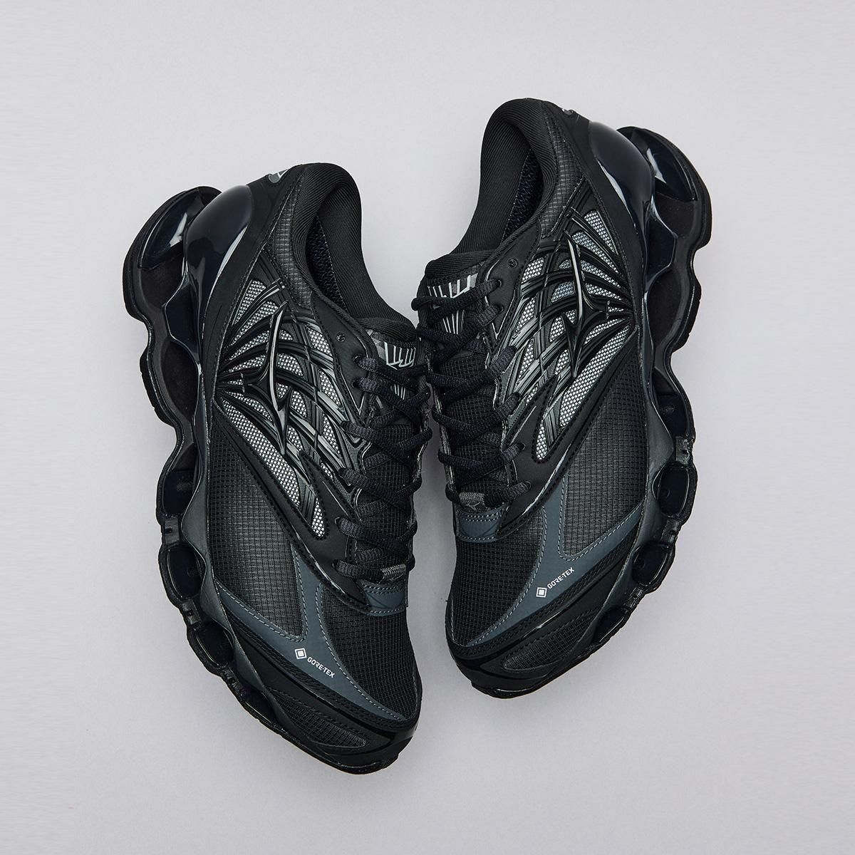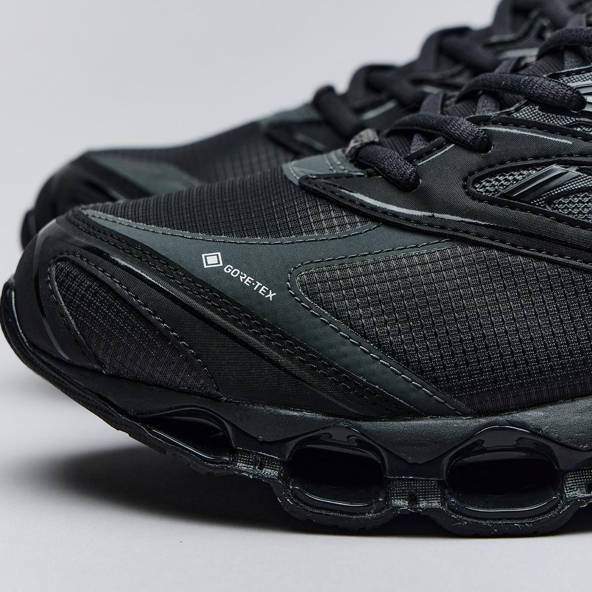 ミズノスポーツスタイルのフラッグシップモデルである「WAVE PROPHECY LS 」のGORE-TEX プロダクトテクノロジー搭載モデルをリリース。WAVE PROPHECY LS をベースにGORE-TEX プロダクトテクノロジーを搭載し、様々なシチュエーションや環境に対応可能。今作のWAVE PROPHECY LS GTXは、アッパーにマイクロリップストップを使用し、耐久性がありながらもソフトな風合いに。サイドパネルにはメタリック材を覗かせスタイリッシュかつテクニカルな雰囲気に仕上げています。ミズノ独自のソール構造、インフィニティウエーブを採用し、アウトソールラバーには濡れた路面でグリップ性を発揮するWgrip (ダブルグリップ) を採用することで、雨など悪天候のシチュエーションにも耐えられる一足となっています。