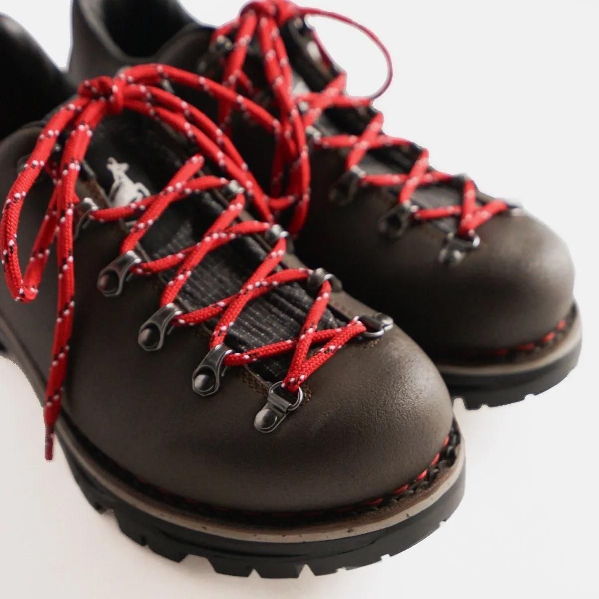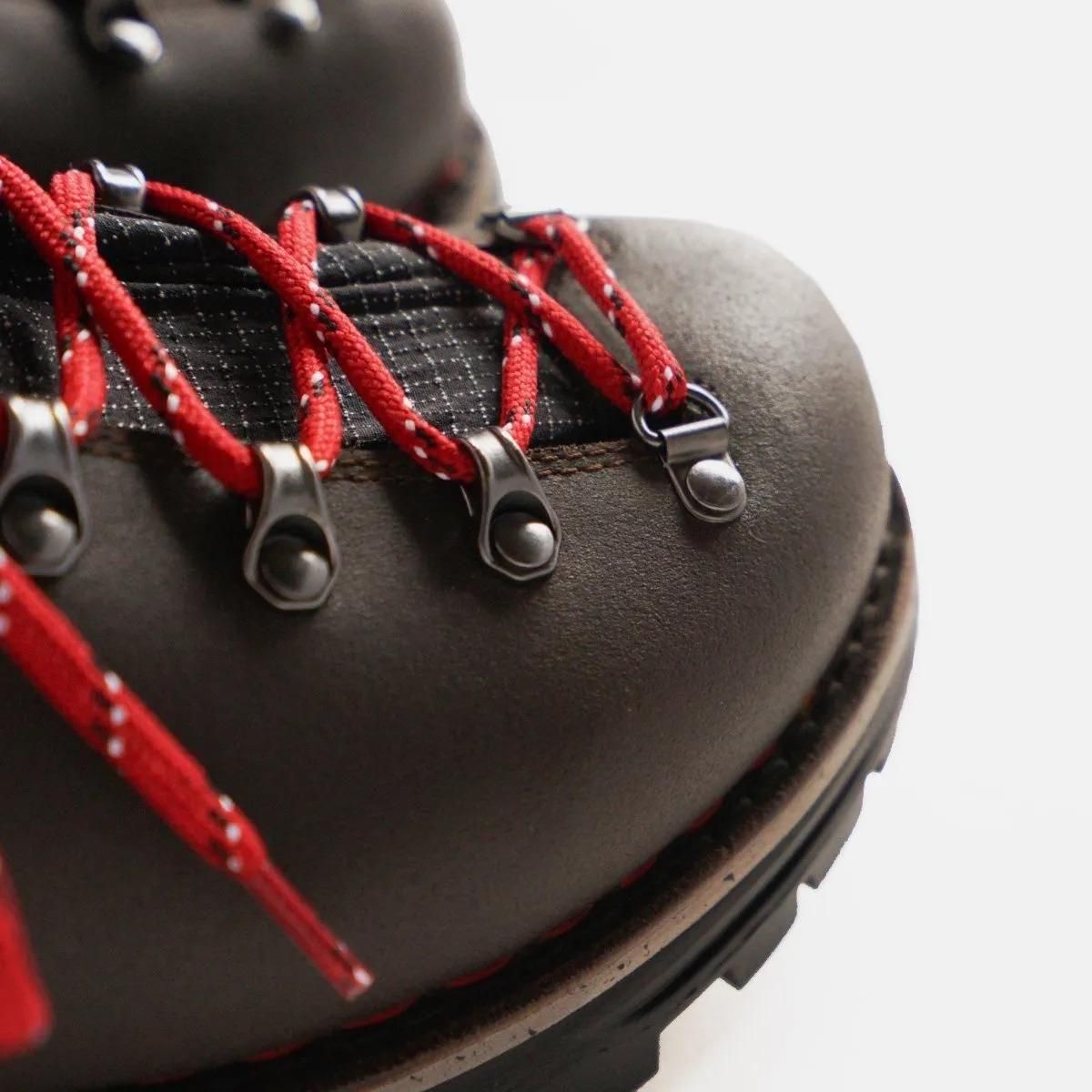 ・ノルヴェイジャン・ステッチの特徴は、アッパーとソールをつなぐ2本のステッチにあります。目に見える横の縫い目は、アッパーとインソールをつなぎ、「ノルヴェイジャン製法」として知られています。スモールステッチと呼ばれる縫い目は、アッパーとミッドソールをつなぎ、そこにビブラム社のアウトソールが圧着されています。この組み立てにより、堅牢性と密閉性が保証されています。