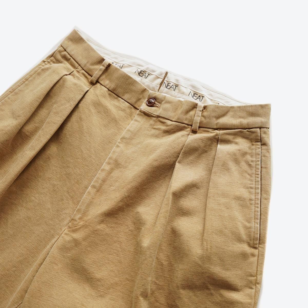 定番NEAT Chinoの新素材モデル。 ヴィンテージ特有のヨコムラの出方に拘ったヴィンテージリプロダック生地を使用。 芯まで染まりきらない特殊染色により、ヴィンテージの風合いが色濃く出ております。