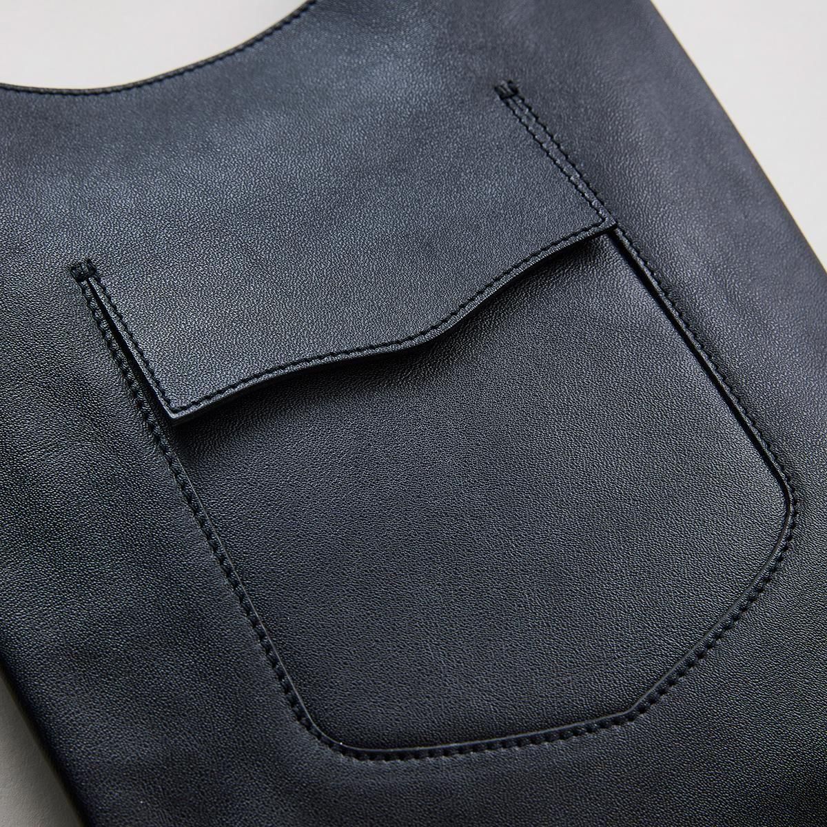 無骨な表情のホースレザーを使用したブランド定番のショルダーバッグ。収納できる フラップポケット、NNのパンチングワッペンを配置したデザイン。生産は一人の職人が裁断から縫製まで一貫して行っています。ショルダーストラップは取り外しができます。別売コインケースをシャックル(U字の金具)に取り付けることも可能です。